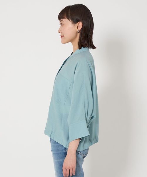 ドルマンスリーブのゆるっと感のあるイージーさやポケットディテール、裾のドロストデザインがポイント。
