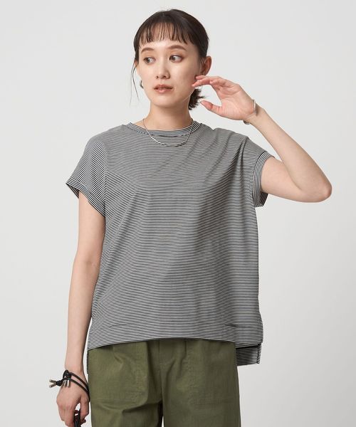 肩から二の腕までのラインを包み込んでくれるフレンチスリーブデザインのTシャツ。