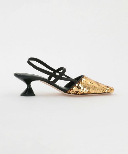 キラキラとしたスパンコールの輝きが、アクセサリーのように華やかな雰囲気のパンプス。