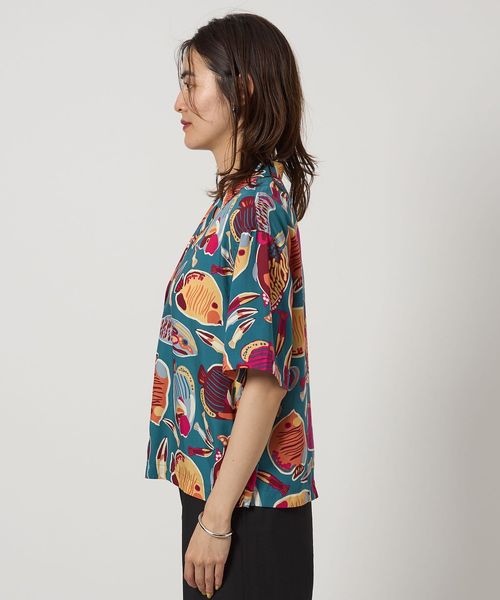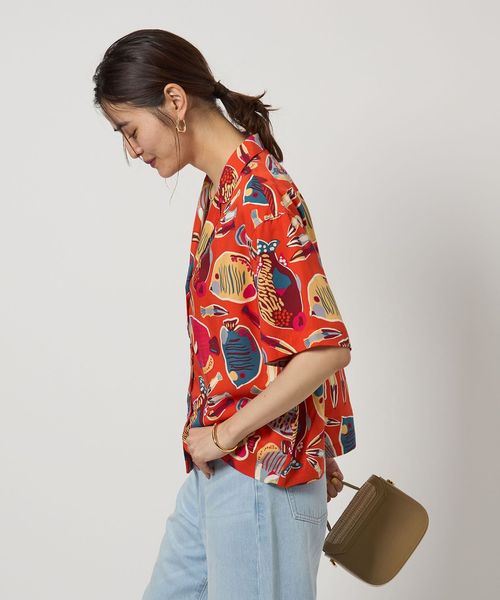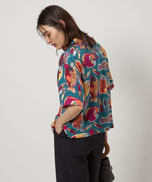 島の生態系をモチーフにしたプリントが目を惹くシャツ。