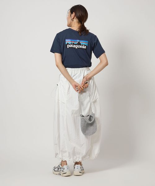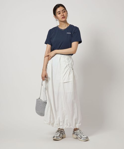 プリントパンツやナイロンスカートなどカジュアルなボトムと好相性。