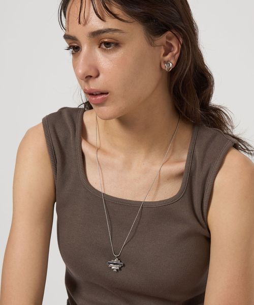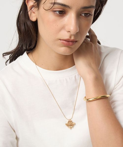 ニュアンスのあるバーを組み合わせた、動きのあるモチーフがポイントのペンダントネックレス。
