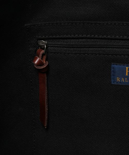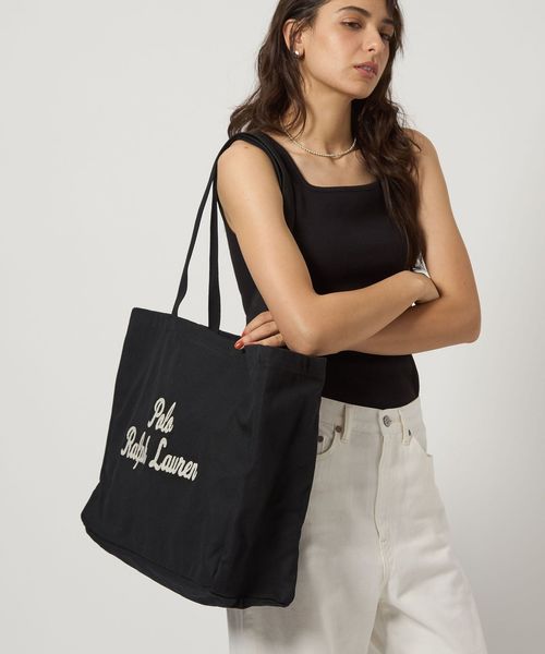長持ちしやすいコットンキャンバスを使用し、Ralph Laurenのシグネチャーであるチェーンステッチのスクリプトロゴ刺繍が特徴的な、収納力に優れたトートバッグです。