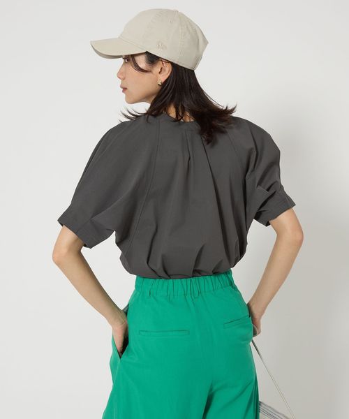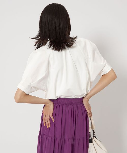 身頃はすっきりとコンパクトに、袖口の大きめタックで袖ボリュームを表現しました。