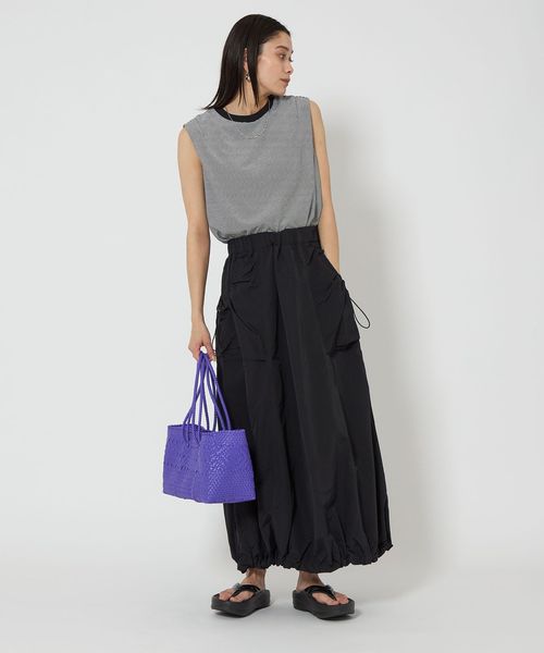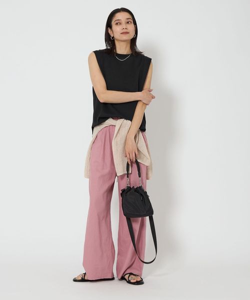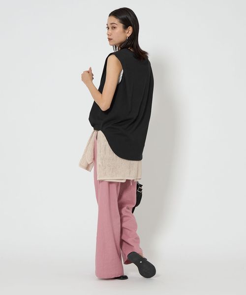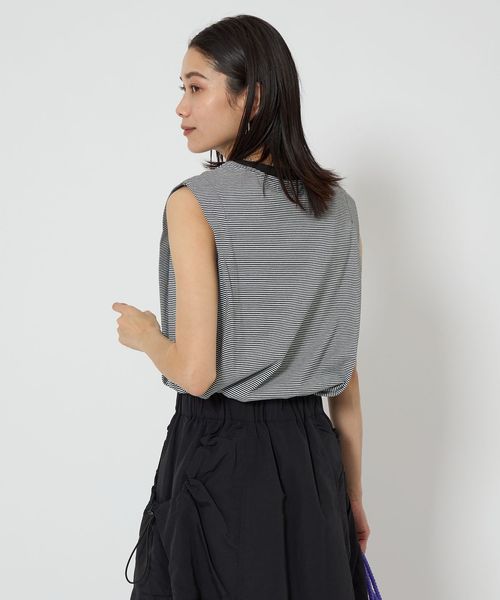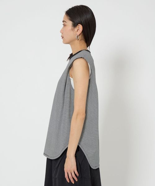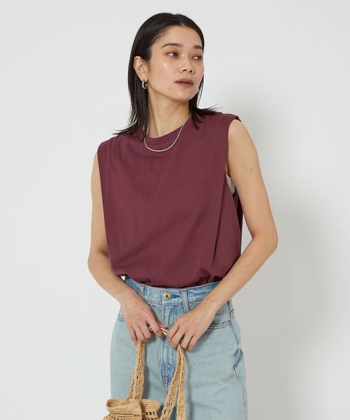 肩のタックデザインがポイントのノースリーブTシャツ。