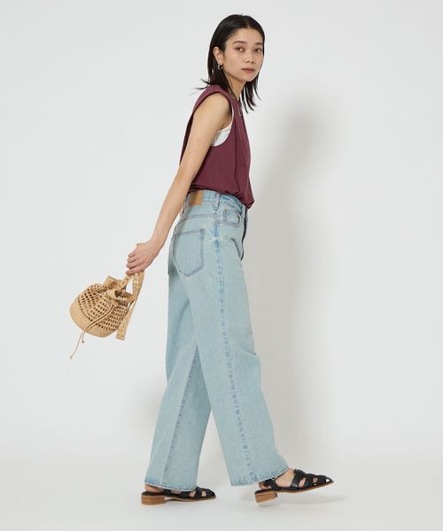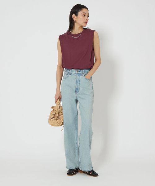 デニムはもちろん、ワイドパンツやフレアスカートなどどんなボトムとも合わせやすいシンプルなデザイン。