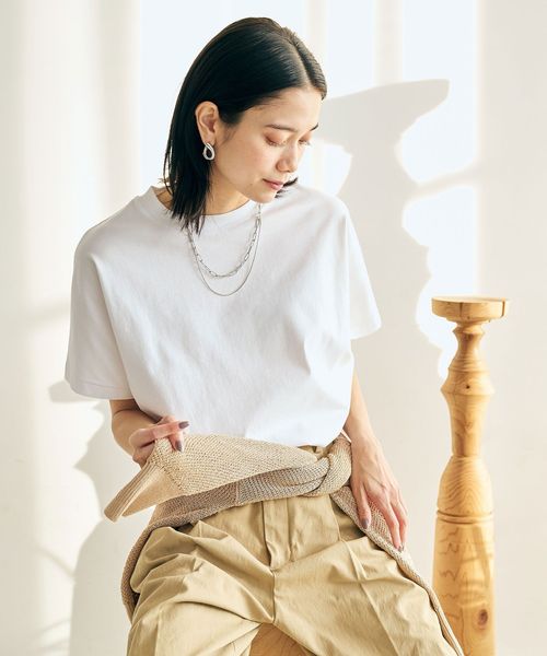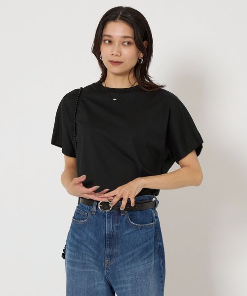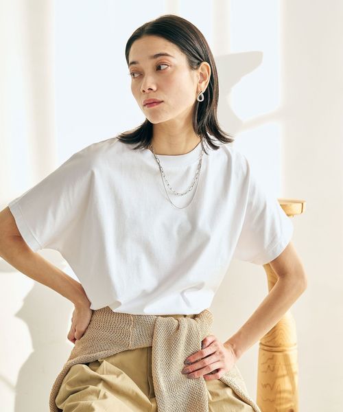 ドルマンスリーブデザインのTシャツ。