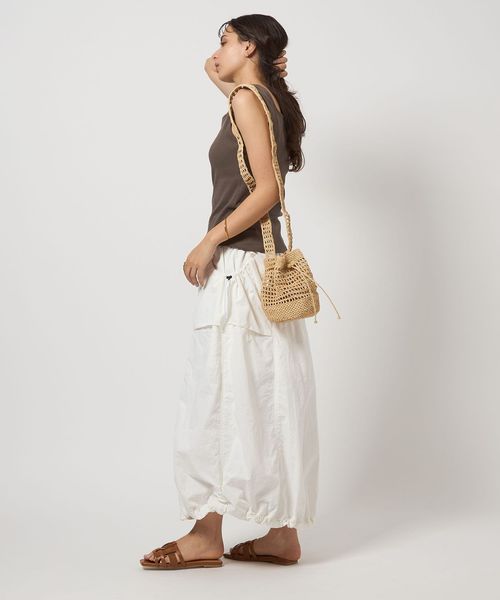 バッグの中が少し透けるような編が珍しく、コーディネートのポイントになります。