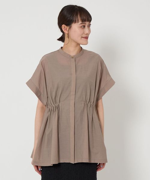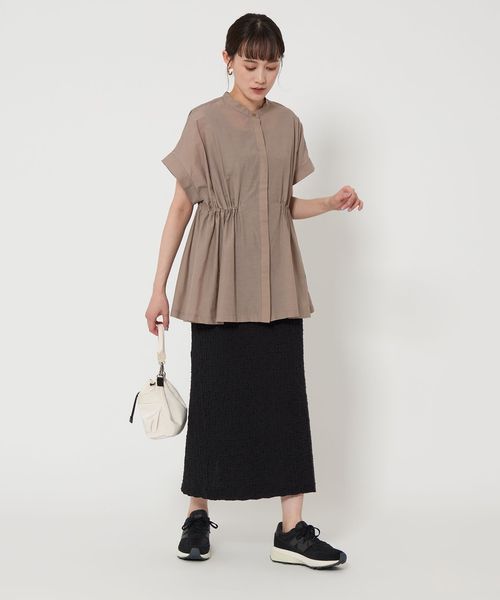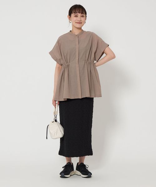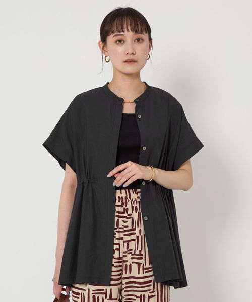 ウエストギャザーデザインが目を惹くデザインシャツ