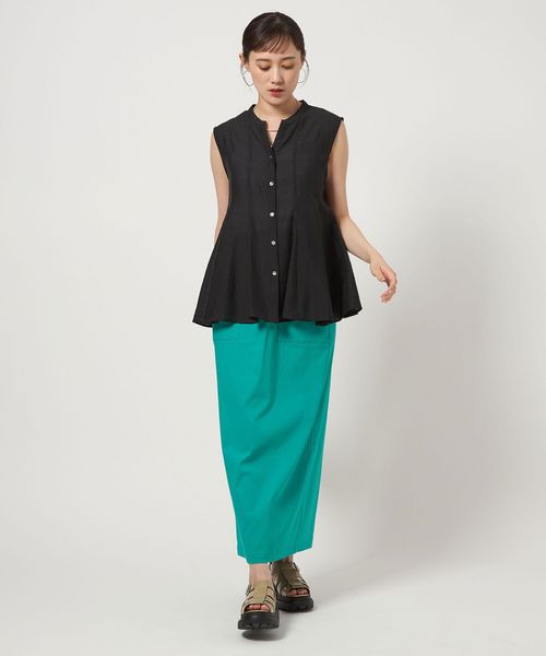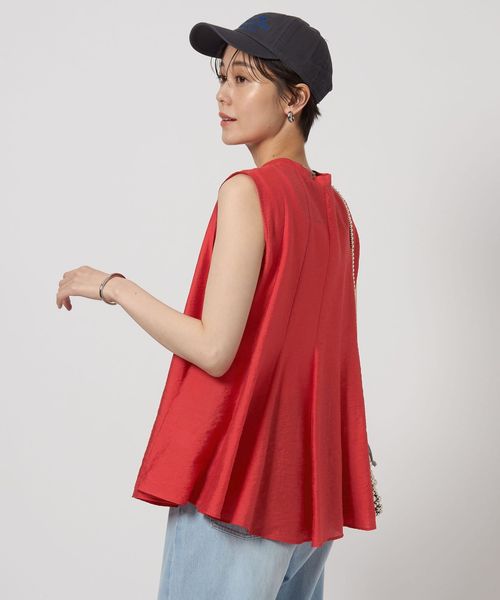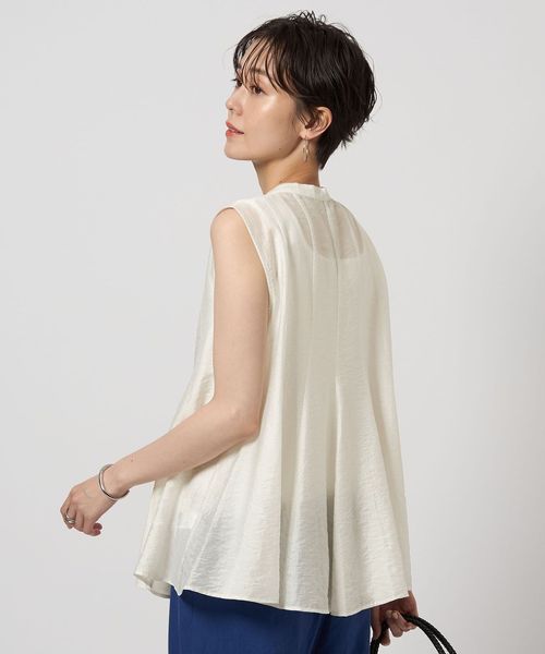 華やかなシルエットがポイントのノースリーブブラウス。