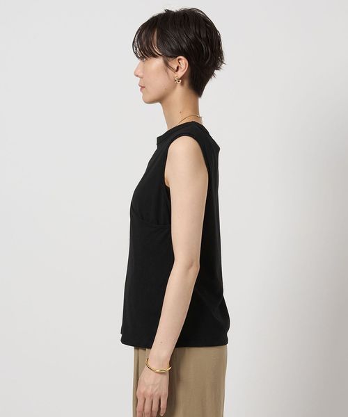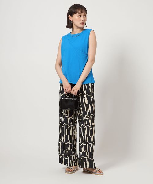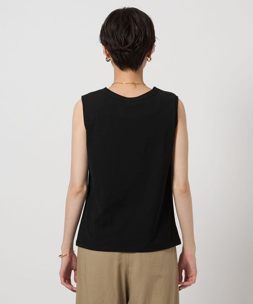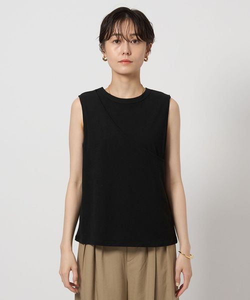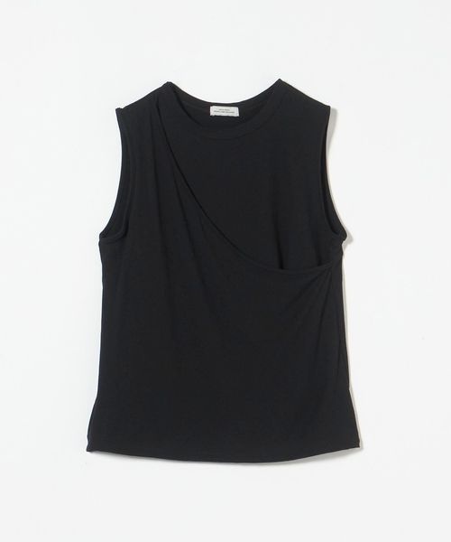 レイヤードしたようなデザインのタンクトップ。