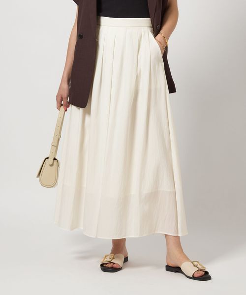 たっぷりタックを施し、ふんわり広がるシルエットにこだわってお作りしたロングスカート。