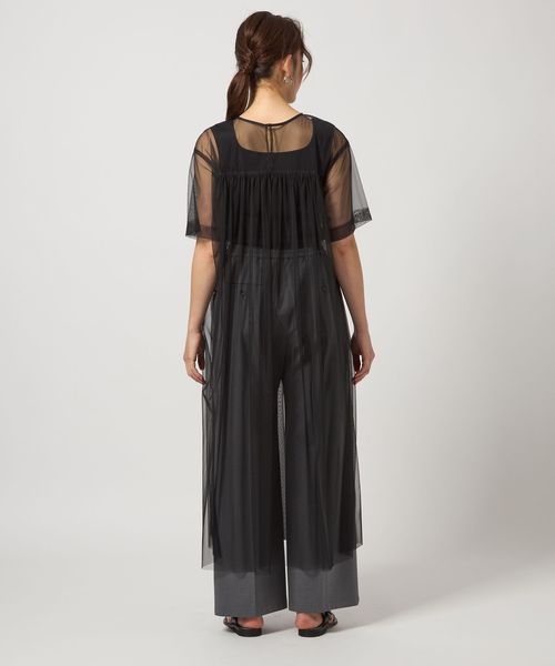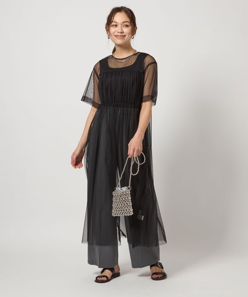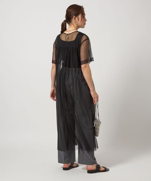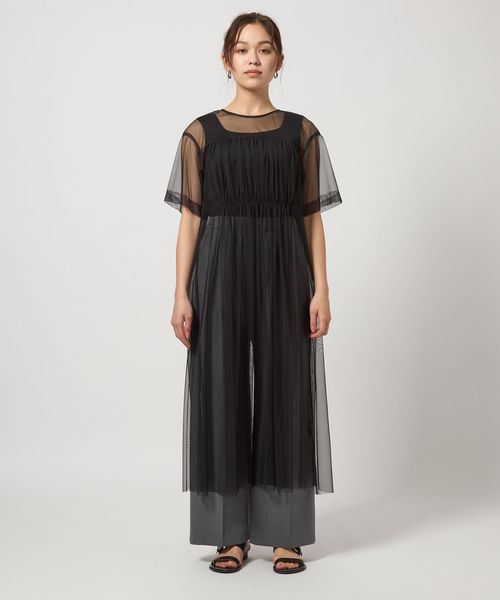 チュール ギャザー ワンピース