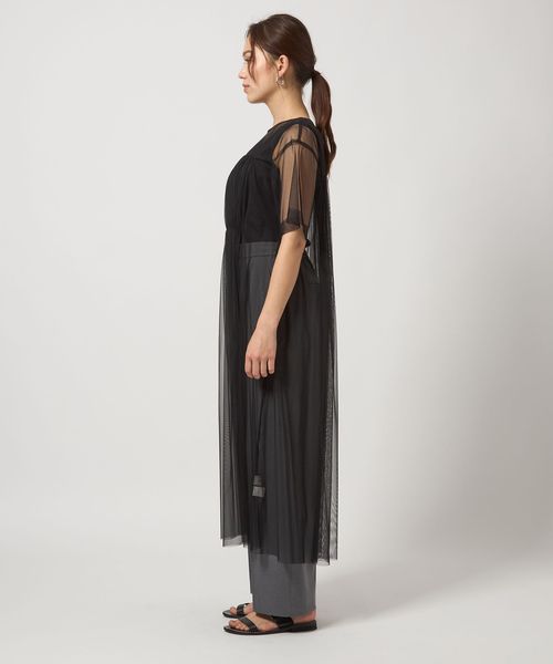 チュールが新鮮なレイヤードワンピース