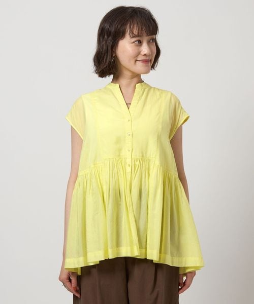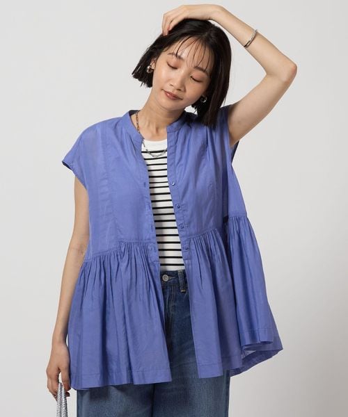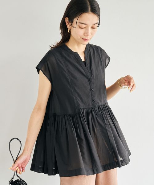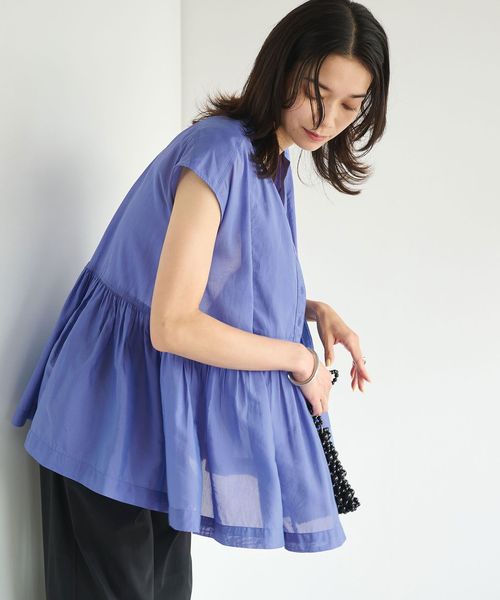 ボイル ギャザー ハオリ ショートスリーブ ブラウス