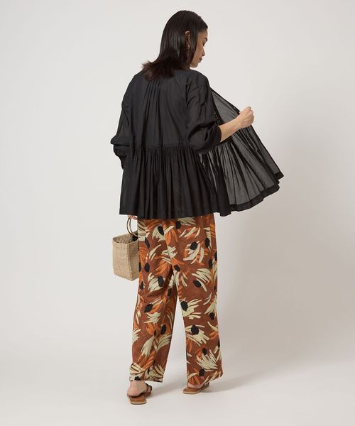 レーヨン×コットンのボイル素材にたっぷりギャザーを入れて仕上げました。