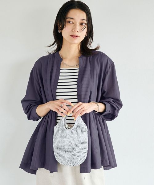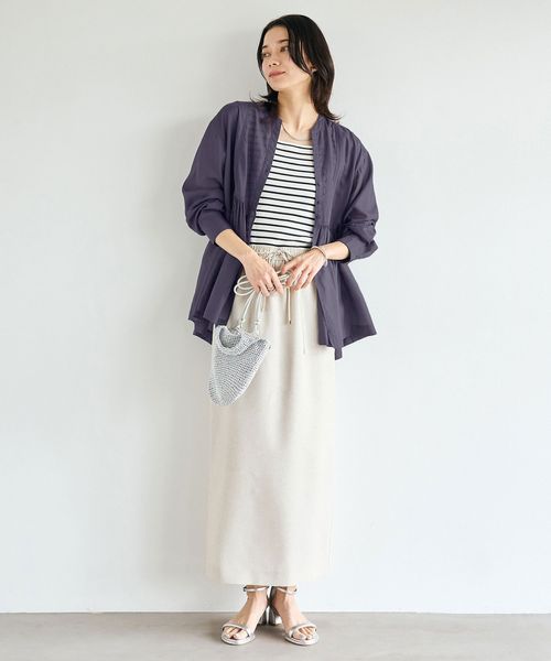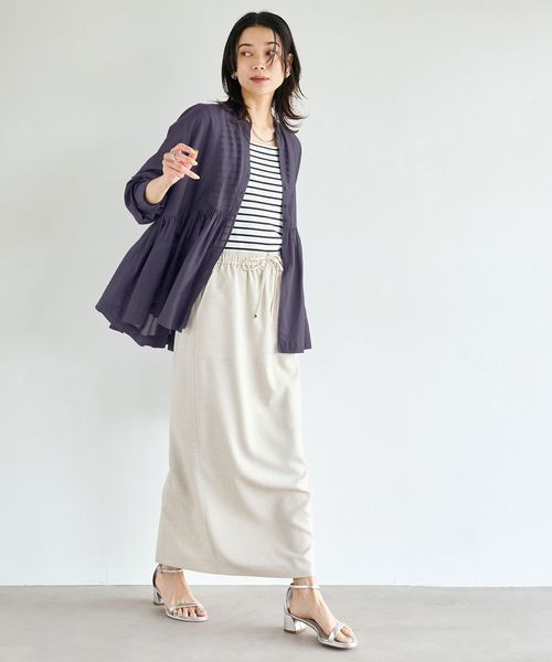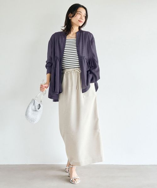 ボタンを閉めればチュニックのように、開ければカーディガンのように羽織れる着回し力もポイントの一枚。