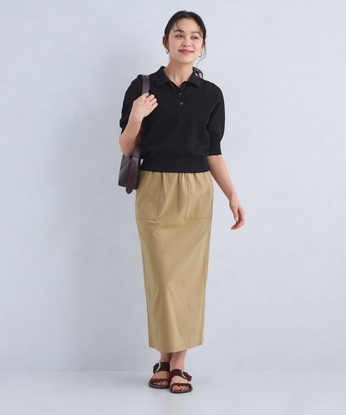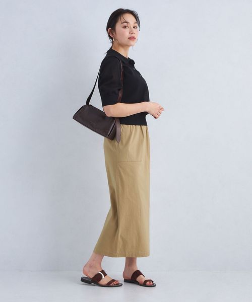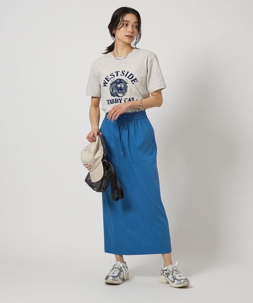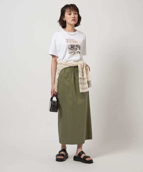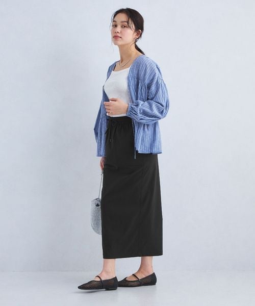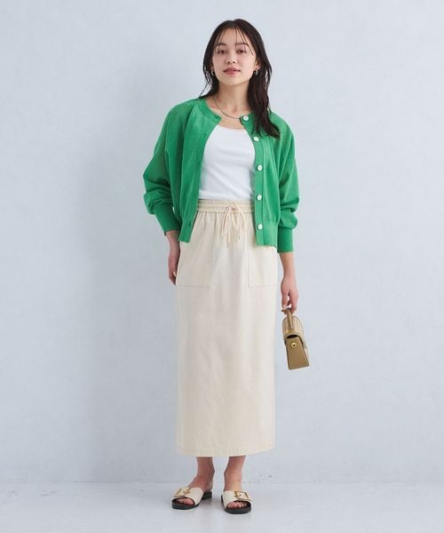 コンパクトなTシャツ合わせやブラウスの前だけインして、ウエスト周りを見せたすっきりとした着こなしがおすすめです。