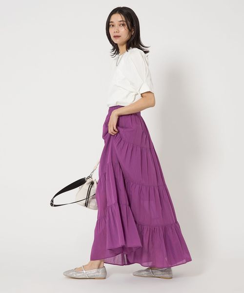 コンパクトなトップスとのメリハリのあるスタイルが◎