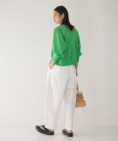ボリューム感のあるカーブシルエットがポイントのパンツ。
