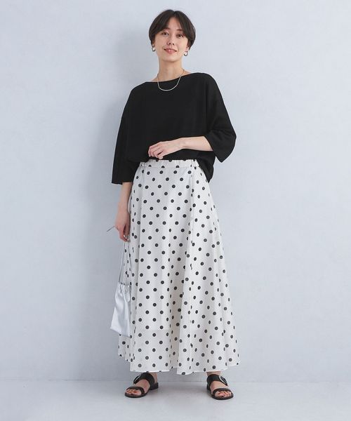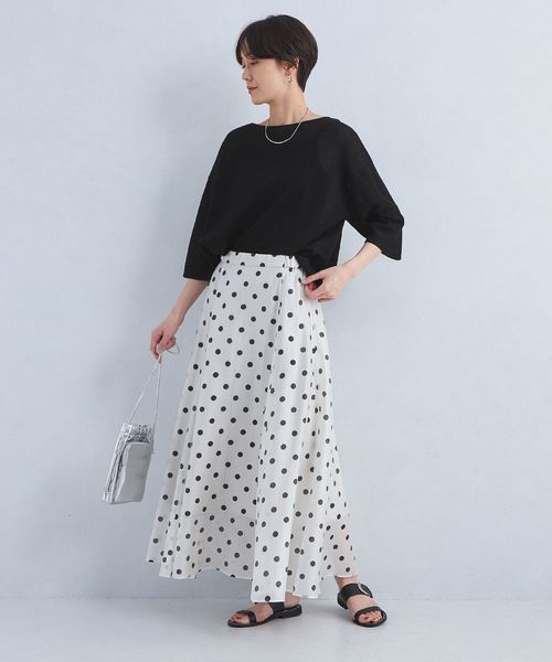 ベーシックカラーのボトムと合わせて大人な着こなしに。