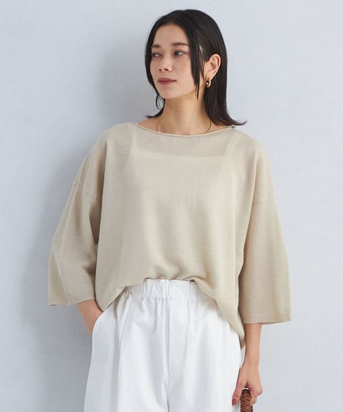 ドルマンスリーブのゆったりとしたシルエットでニュアンス感たっぷりのニットプルオーバ―。