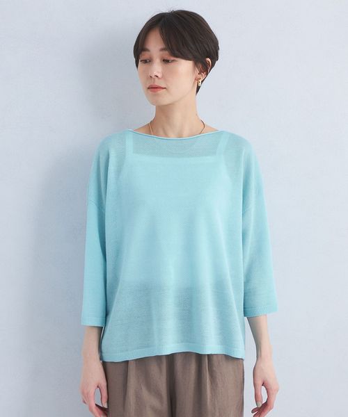 ほどよいシアー感のある素材と七分袖が軽やかな印象を演出します。