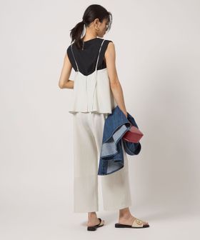 パンツ部分はストレートワイドシルエットで、ほどよくラフながらもすっきりとした着こなしが叶います。