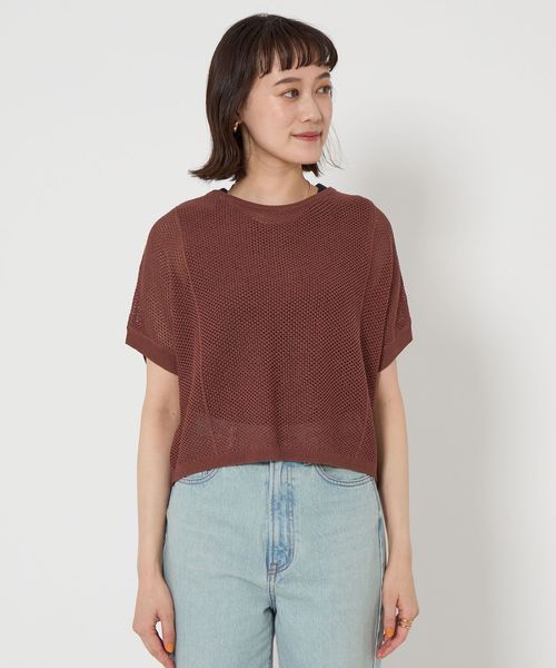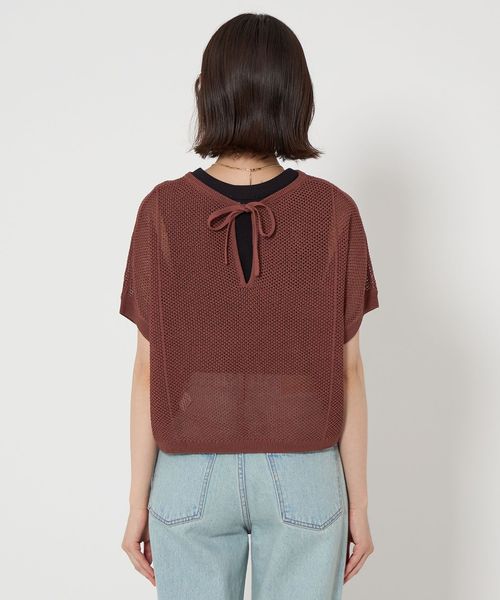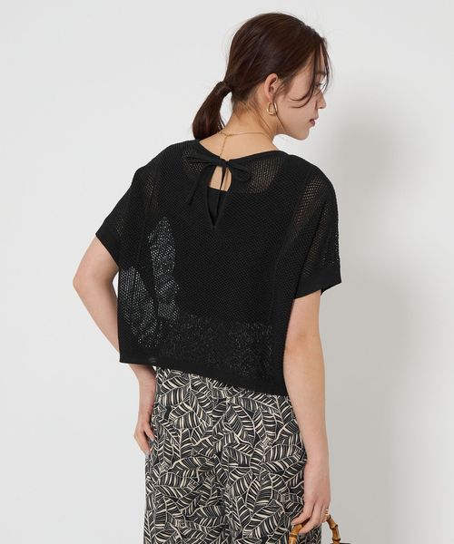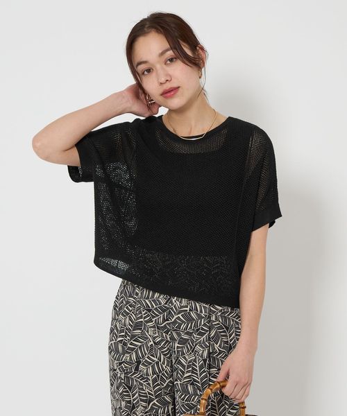 メッシュ クロップド 2WAY ショートスリーブ ニット プルオーバー ―ウォッシャブル―
