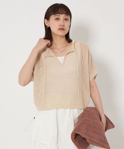 ヘルシーな肌見せが叶うメッシュ編みのニット。