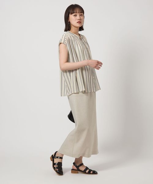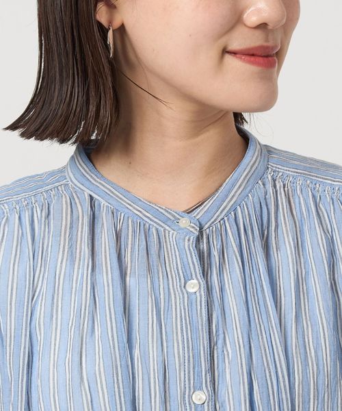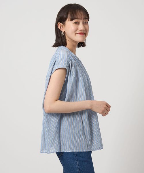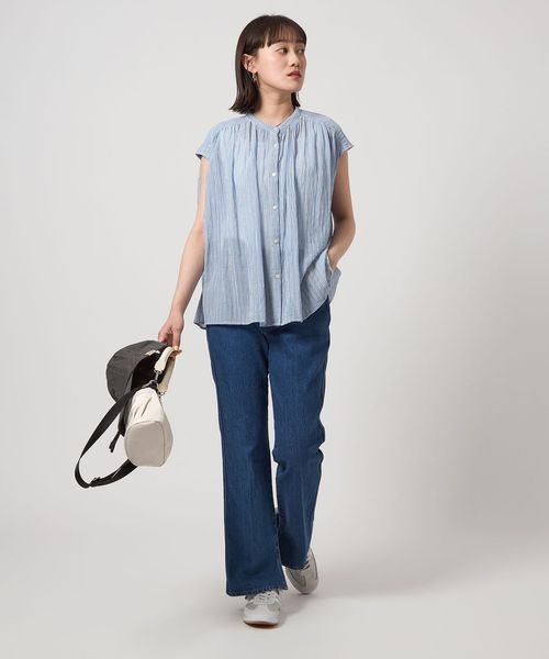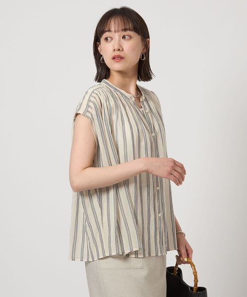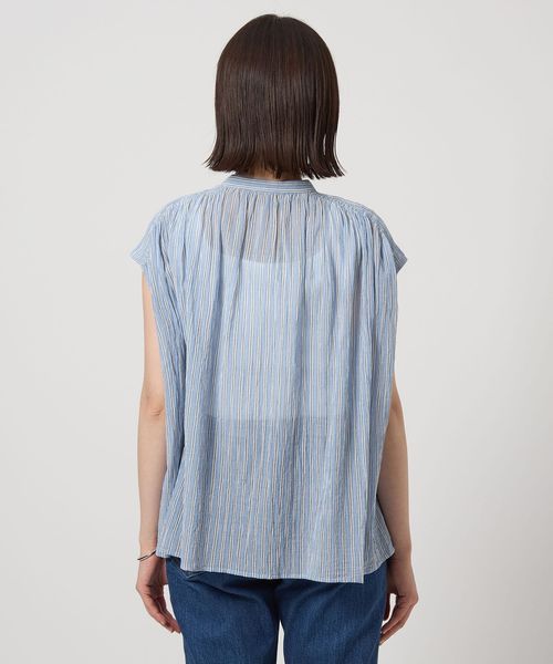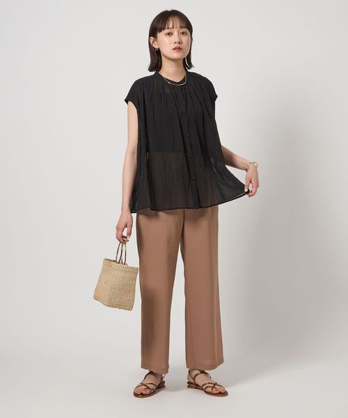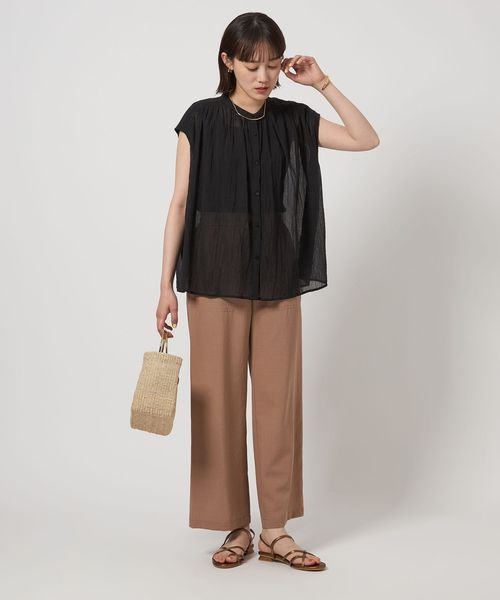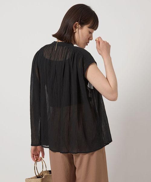 たっぷりと寄せたギャザーがフェミニンなフレンチスリーブのブラウス。