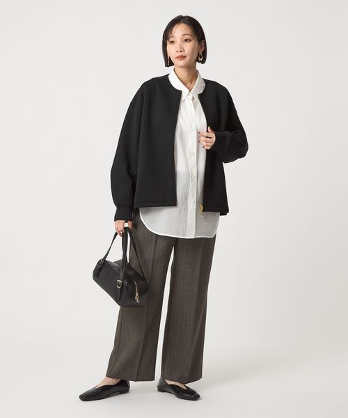 羽織りとしてはもちろん、ニットやカーデの下でももたつかず、重ね着しても快適な着心地です。