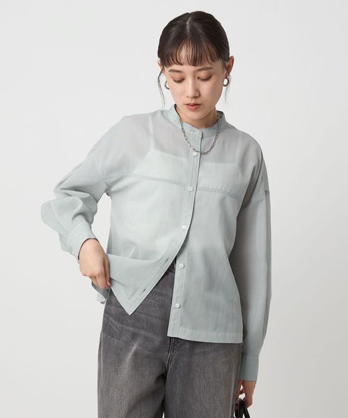 表情のある生地とほどよい透け感がこなれた印象のシアーシャツ。