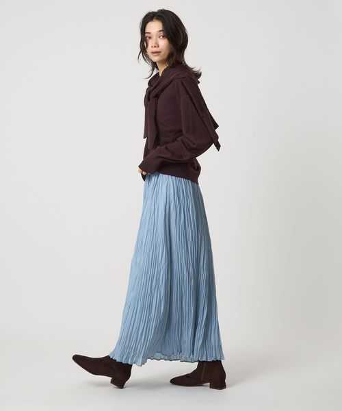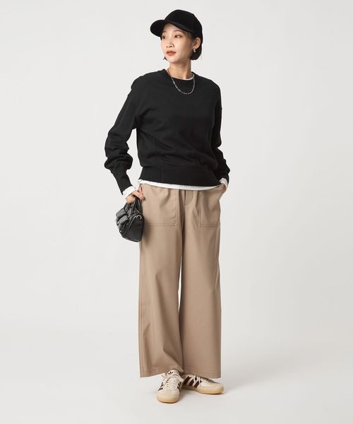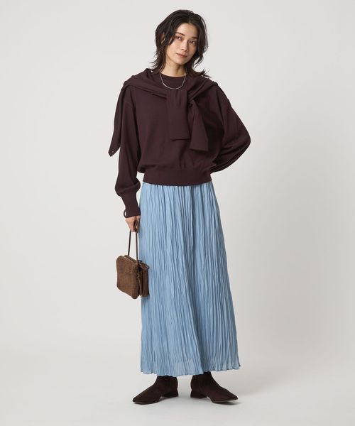 フレアスカートやワイドシルエットのパンツなど、ボリューム感のあるボトムスと好相性。