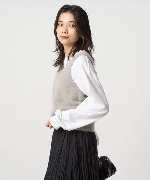 シャツやブラウスとレイヤードして、ビスチェ風に着こなすのもおすすめです。