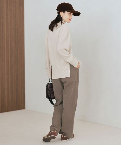 着丈の長いトップスを合わせても重たくならず、すっきりと見せてくれます。
