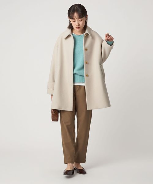 前を開けても閉めても美しく決まる、シルエットにこだわったステンカラーコート。