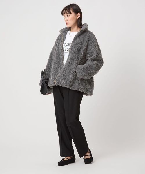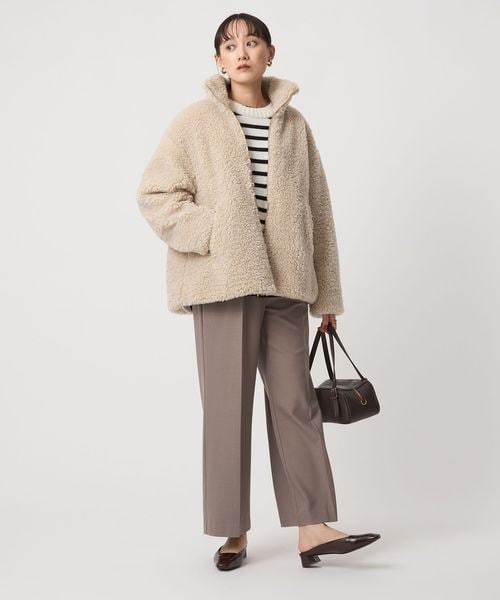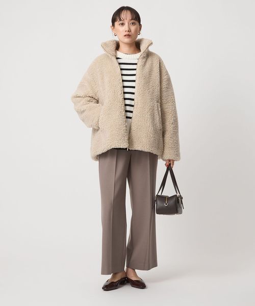 トレンドのスタンドカラーブルゾンをボア素材で作り上げました。