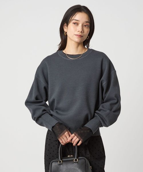 スウェットライクなクルーネックプルオーバ―。