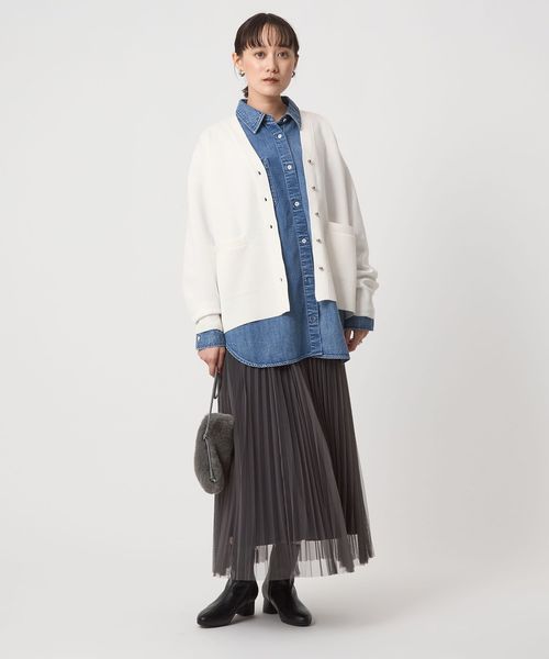 デニム合わせのカジュアルなスタイルはもちろん、チュールスカートと合わせたフェミニンな着こなしもおすすめです。