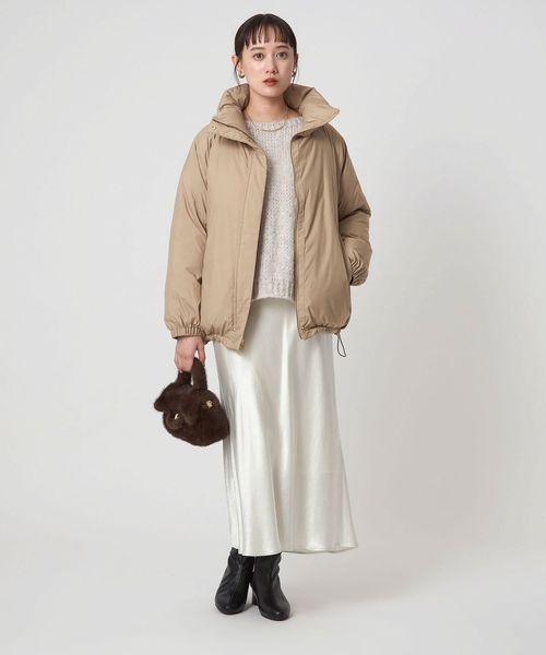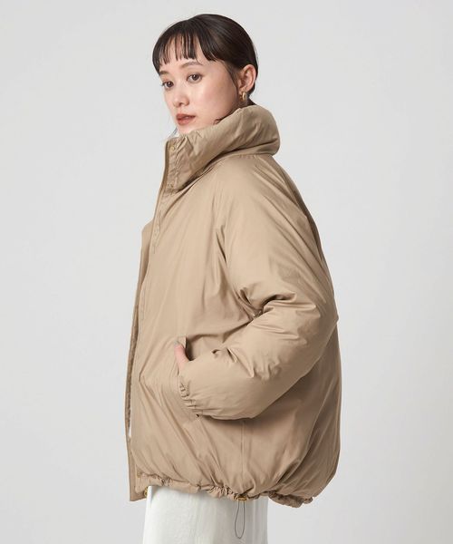 裾部分のドロストコードを絞って、コクーンシルエットでの着こなしもおすすめです。