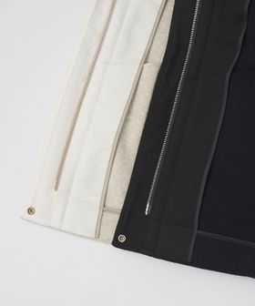 ネック部分にはチンフラップを付けているので、スタンドカラーとしても着用可能◎