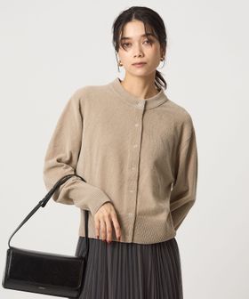 シャープな印象のクルーネックカーディガン。