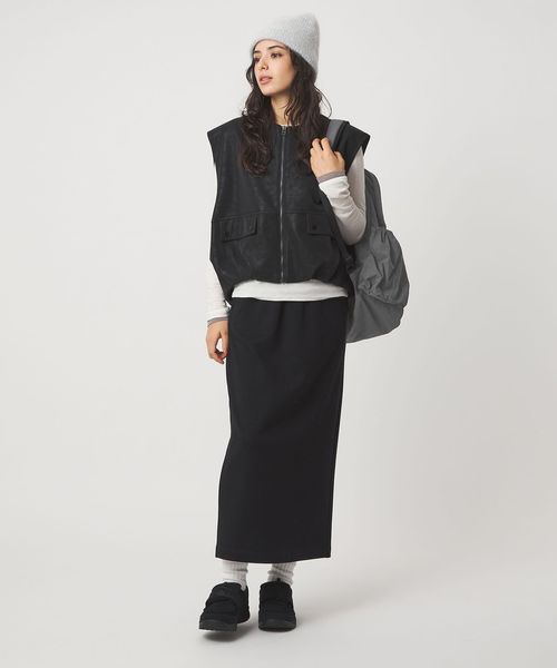 裏起毛素材でふんわりとしたはき心地が魅力のタイトスカート。