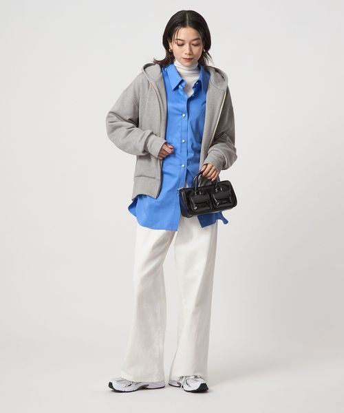 同素材のボトムスと合わせたセットアップスタイルもおすすめです。