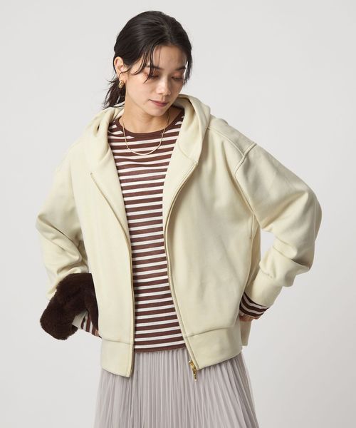 やさしい着心地とほどよい立体感を兼ね備えたジップフーディー。