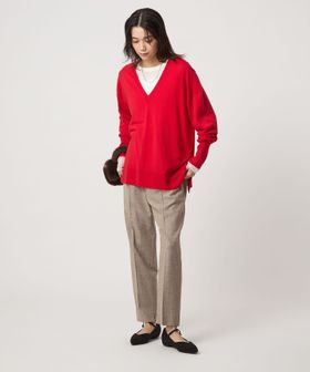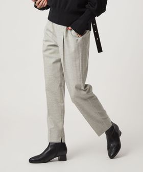 あたたかみと上品さを兼ね備えたサキソニー素材のパンツ