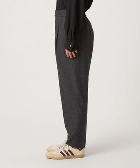 軽さのあるサキソニー素材を使用したワイドテーパードシルエットのパンツ。