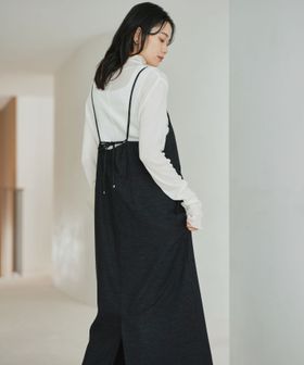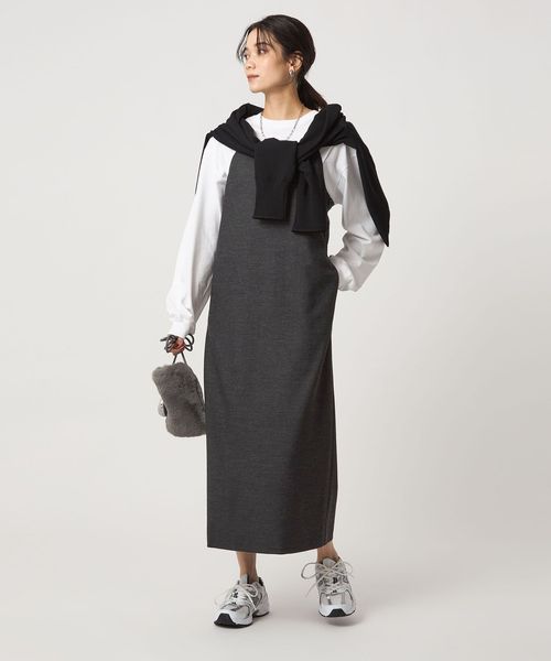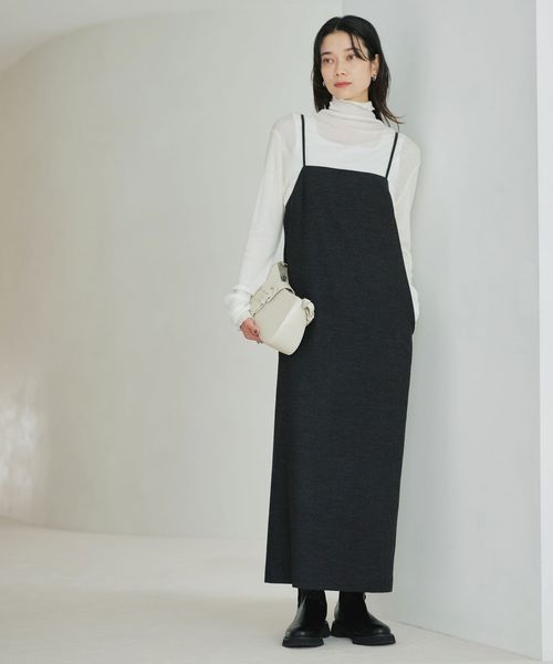 あたたかみと上品さを兼ね備えたサキソニー素材のキャミワンピ