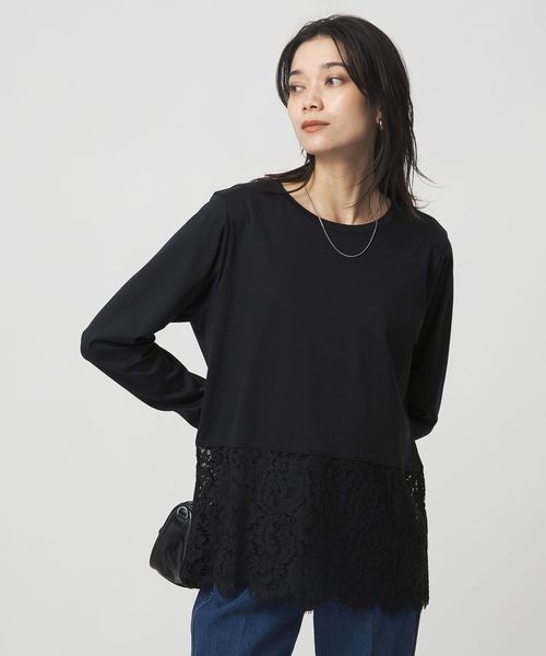 ニットやスウェットの裾から、レースをちらっと覗かせるレイヤードスタイルがおすすめ。